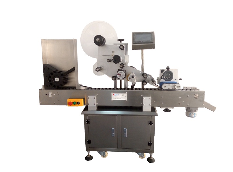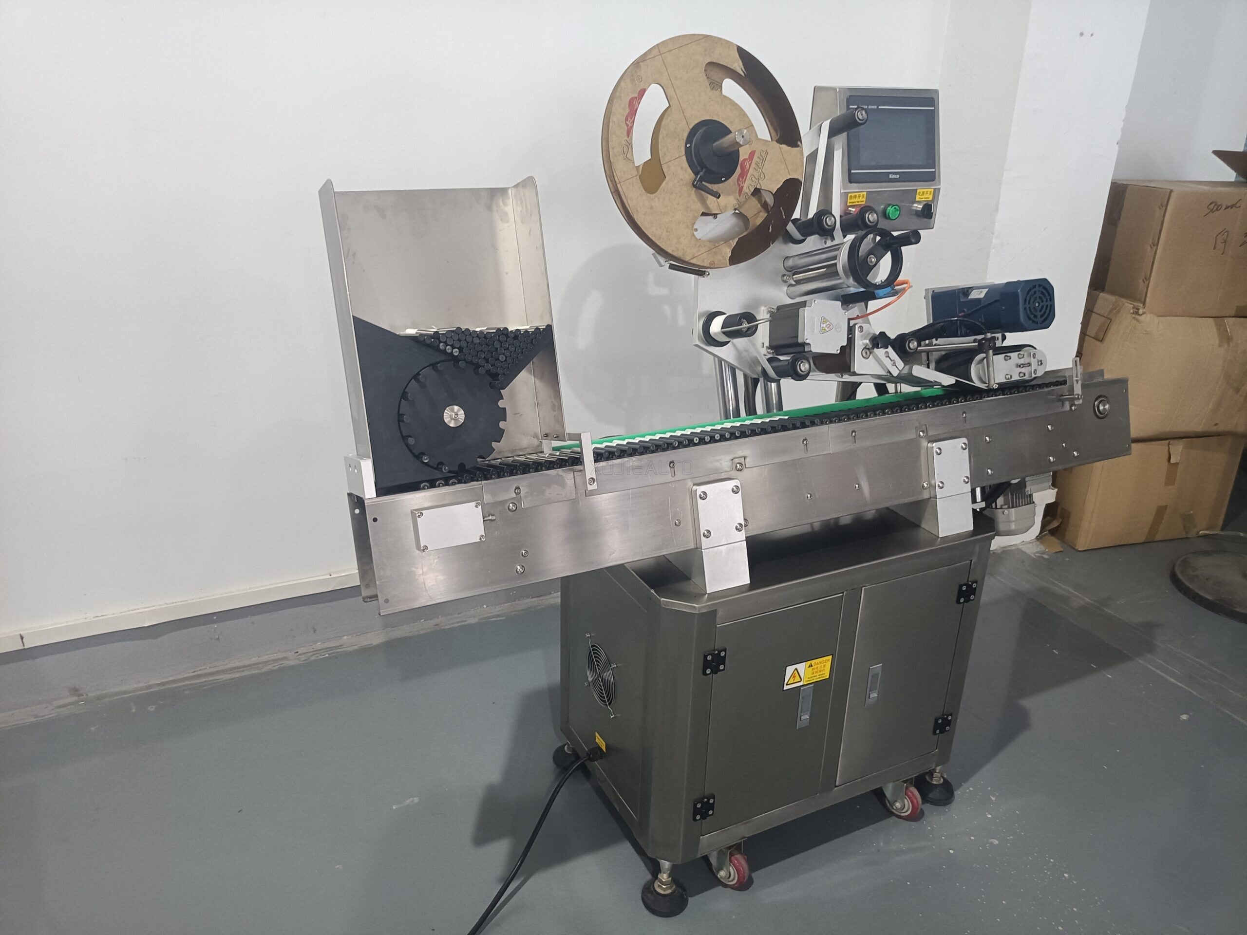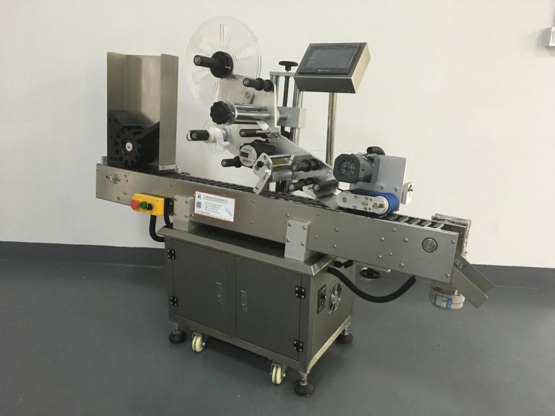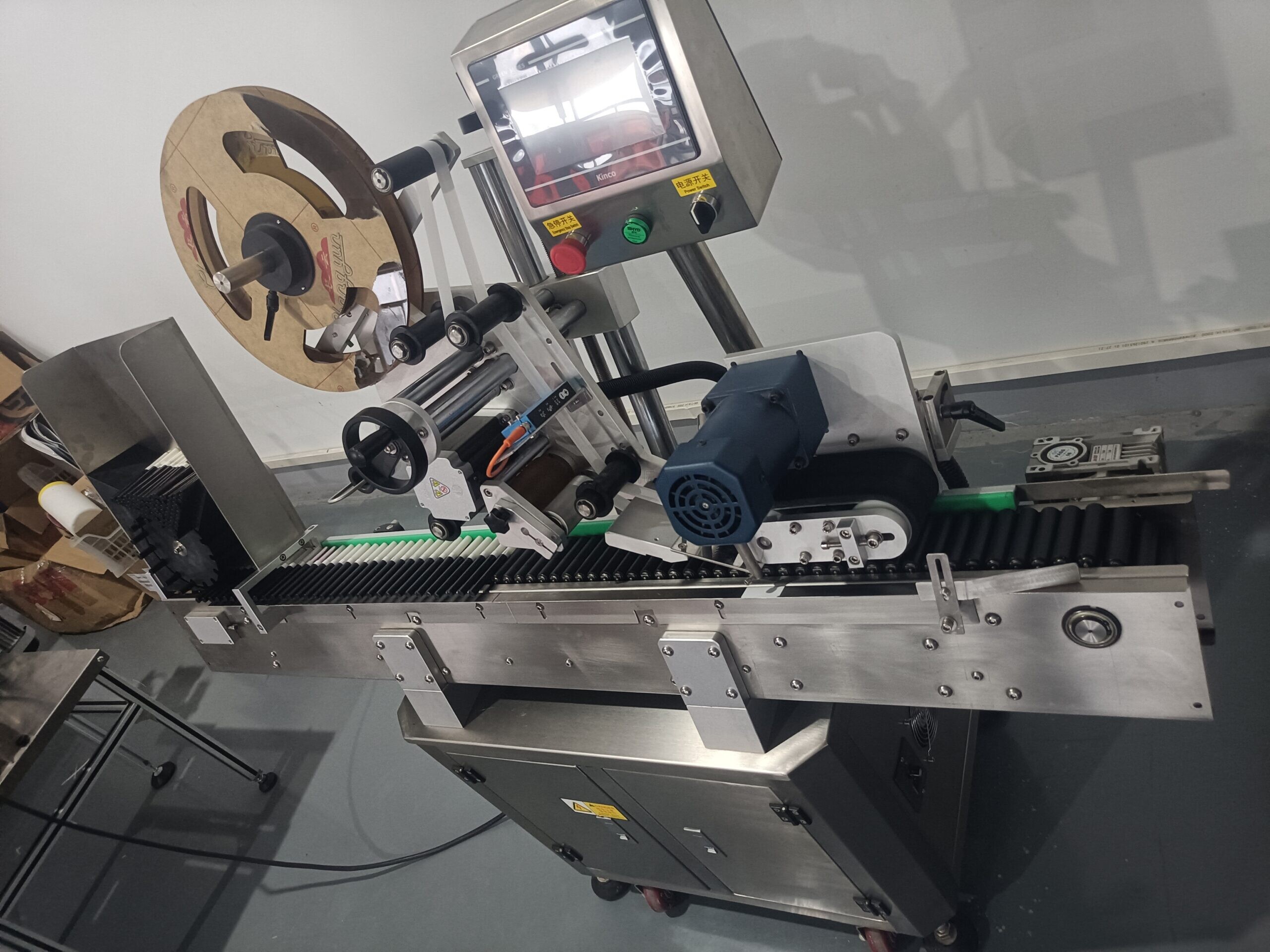 操作过程:人工放产品/自动机械理料—>产品输送(设备自动实现)—>贴标(设备自动实现)—>收集已贴标产品。